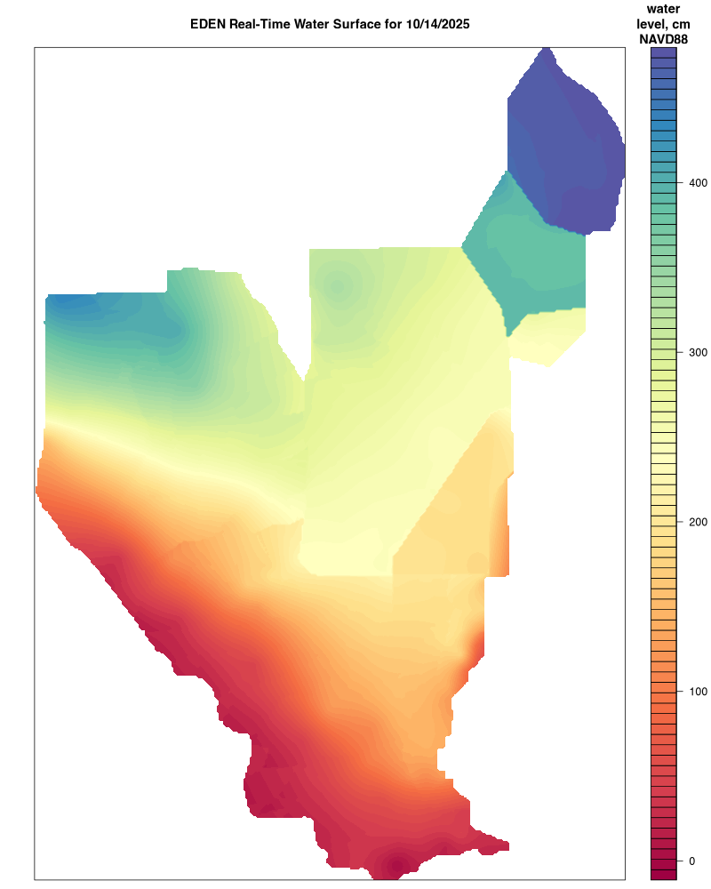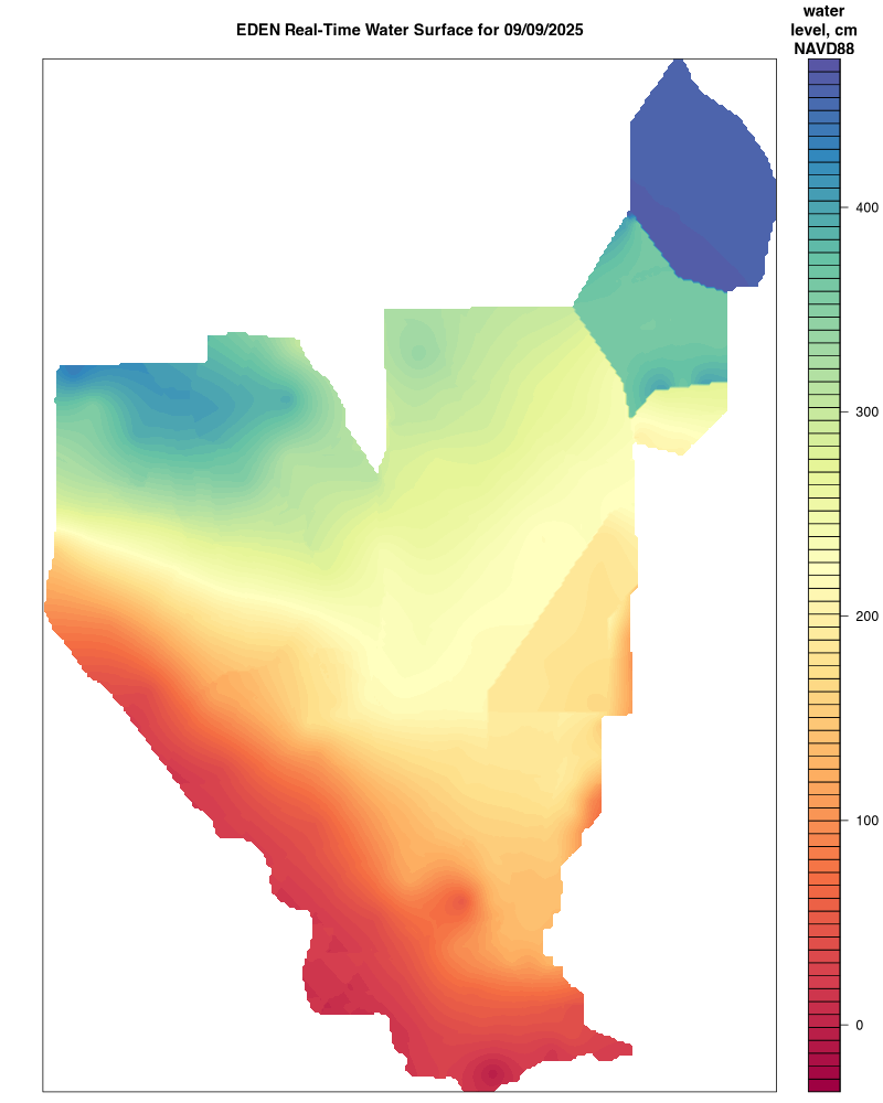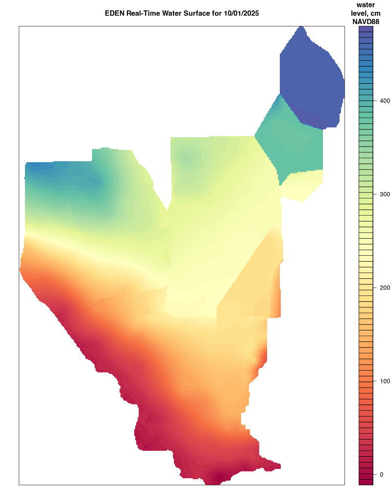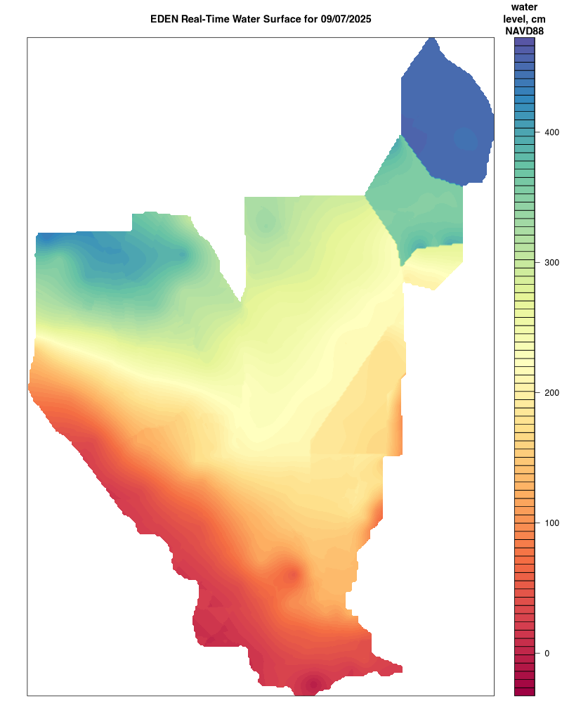Within approximately 45 days after the end of each quarter (December 31, March 31, June 30, September 30), finalized and approved water level data are provided by SFWMD and ENP at which time real-time EDEN surfaces will be replaced by provisional surfaces. EDEN surfaces created with final, approved water level data from all agency gages will be available in approximately July of each year for the previous year's water year (October – September).