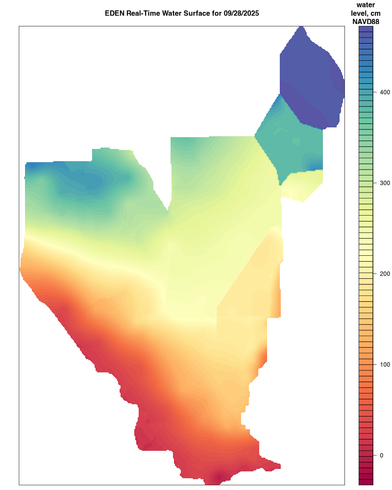 EDEN real-time water surfaces are created daily using real-time water level data for the EDEN network. Most data relayed by satellite or other telemetry have received little or no review. Inaccuracies in the data may be present because of instrument malfunctions or physical changes at the measurement site. A threshold comparison program eliminates daily values that appear erroneous (i.e. extremely high or low, extremely different from previous days). Subsequent review of the data may result in significant revisions to the data.