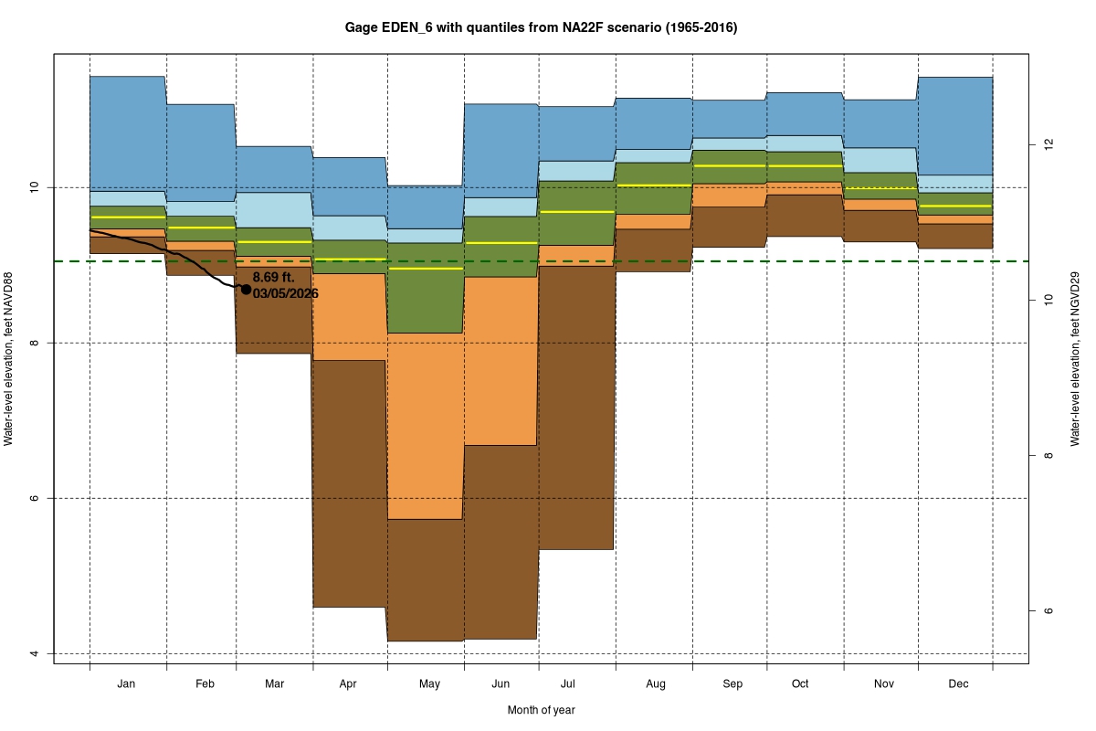 | Daily Water Level Percentiles by Month for EDEN_6 (percentiles based on NA22F model 1965–2016) |