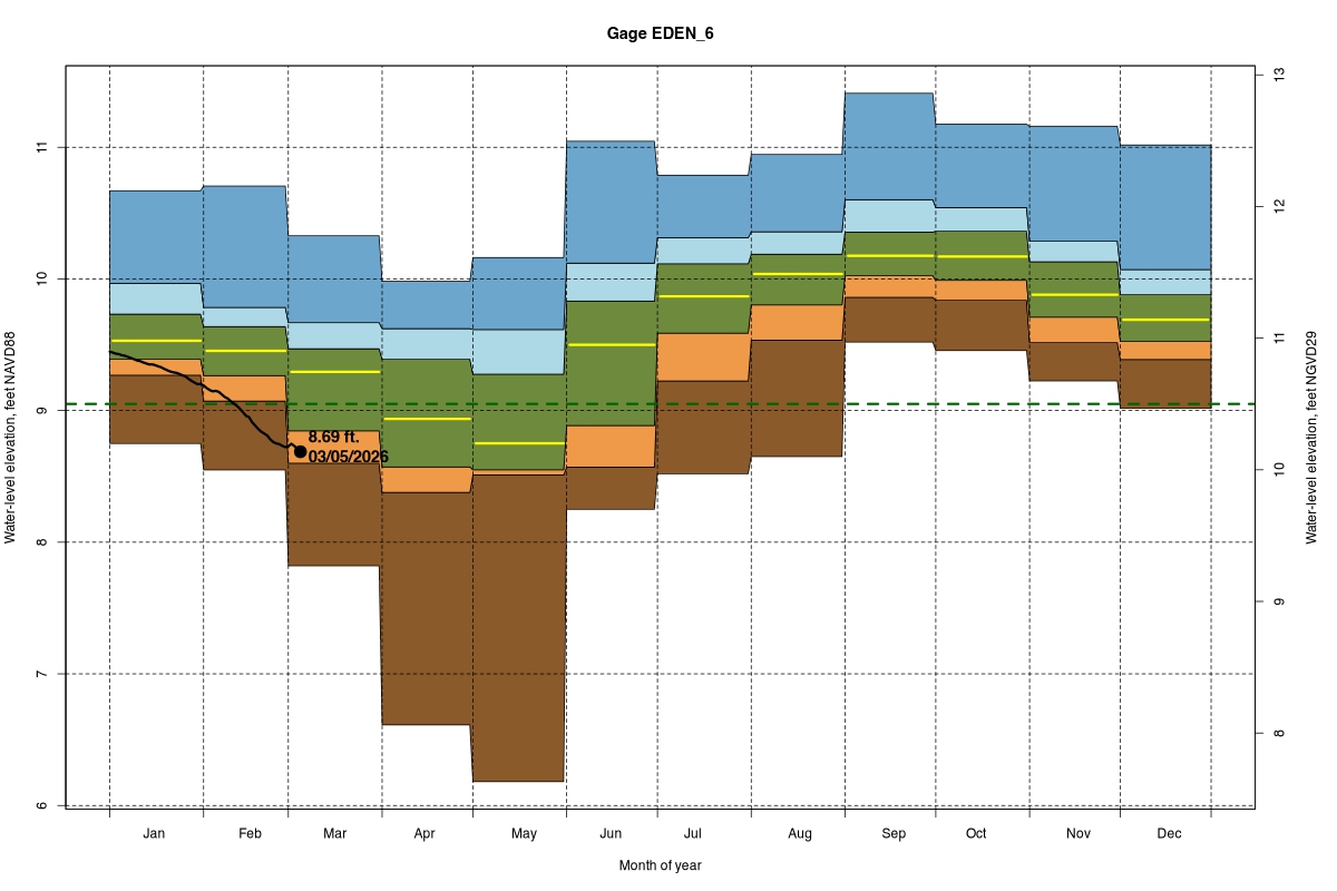 | Daily Water Level Percentiles by Month for EDEN_6 (percentiles based on 1/1/2000–2025) |